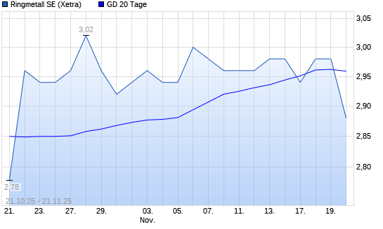 Mit dem Rücksetzer auf 2,84 EUR hat die Ringmetall-Aktie am 20.11.2025 die 20-Tage-Linie nach unten gekreuzt.