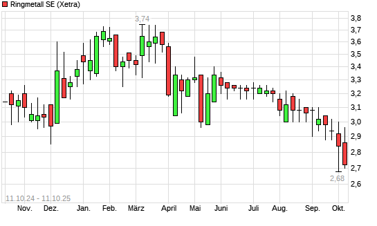 Mit dem Rücksetzer auf 2,66 EUR hat die Ringmetall-Aktie (ISIN DE000A3E5E55) am 10.10.2025 ein neues 12-Monats-Tief erreicht und damit den Kurs vom 01.10.2025 eingestellt.Die Ringmetall-Aktie ...weiterlesen