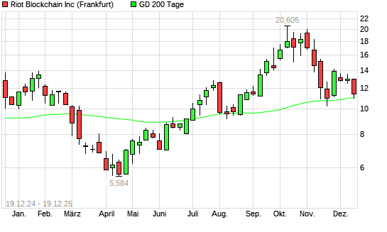 Mit dem Anstieg auf 11,42 EUR hat die Riot Platforms-Aktie am 18.12.2025 die 200-Tage-Linie nach oben gekreuzt.