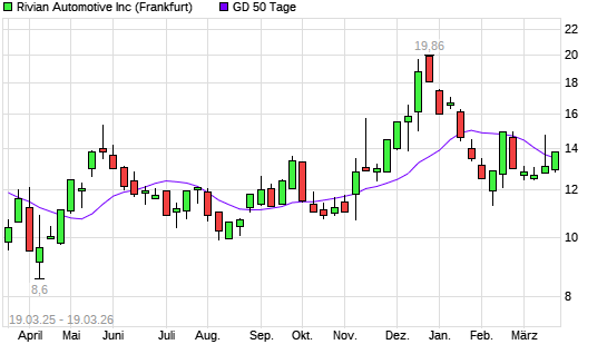 Mit dem Anstieg auf 13,84 EUR hat die Rivian Automotive-Aktie am 18.03.2026 die 50-Tage-Linie nach oben gekreuzt.