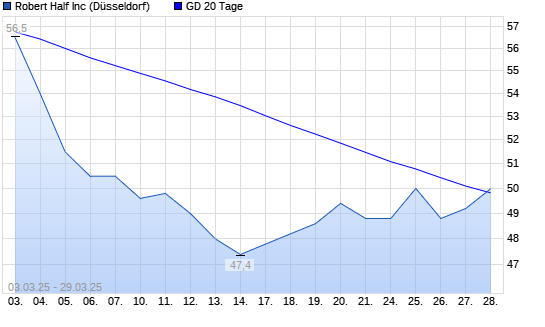 Mit dem Anstieg auf 50,50 EUR hat die Robert Half International-Aktie am 28.03.2025 die 20-Tage-Linie nach oben gekreuzt.