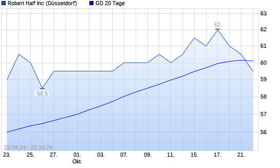 Mit dem Rücksetzer auf 60,50 EUR hat die Robert Half International-Aktie am 21.10.2024 die 20-Tage-Linie nach unten gekreuzt.