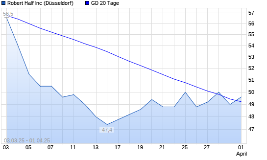 Mit dem Rücksetzer auf 49,20 EUR hat die Robert Half International-Aktie am 31.03.2025 die 20-Tage-Linie nach unten gekreuzt.