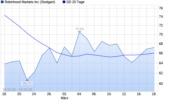 Mit dem Anstieg auf 66,87 EUR hat die Robinhood A-Aktie am 17.03.2026 die 20-Tage-Linie nach oben gekreuzt.