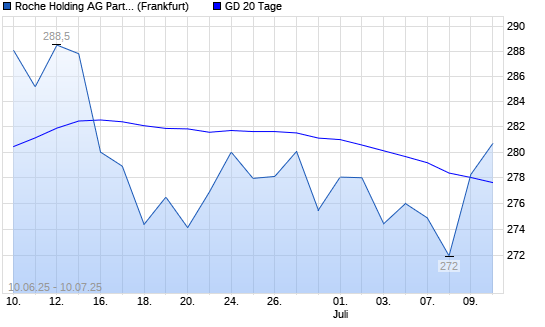 Mit dem Anstieg auf 278,25 EUR hat die Roche Genussscheine-Aktie am 09.07.2025 die 20-Tage-Linie nach oben gekreuzt.