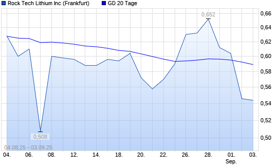 Mit dem Rücksetzer auf 0,55 EUR hat die Rock Tech Lithium-Aktie am 02.09.2025 die 20-Tage-Linie nach unten gekreuzt.