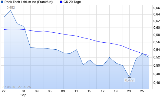 Mit dem Rücksetzer auf 0,52 EUR hat die Rock Tech Lithium-Aktie am 26.09.2025 die 20-Tage-Linie nach unten gekreuzt.