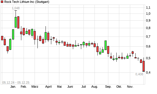Mit dem Rücksetzer auf 0,42 EUR hat die Rock Tech Lithium-Aktie (ISIN CA77273P2017) am 04.12.2025 ein neues 5-Jahres-Tief erreicht und damit den Kurs vom 28.11.2025 eingestellt.Die Rock ...weiterlesen