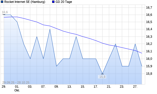 Mit dem Anstieg auf 16,20 EUR hat die Rocket Internet-Aktie am 27.10.2025 die 20-Tage-Linie nach oben gekreuzt.