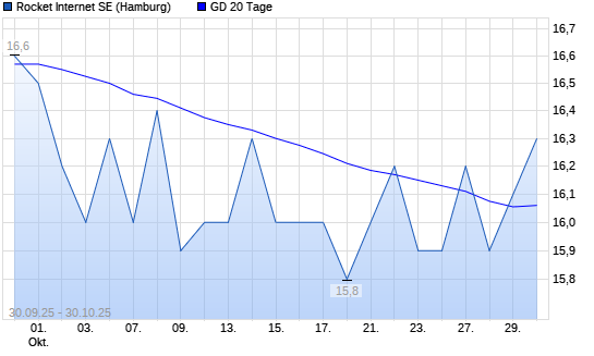 Mit dem Anstieg auf 16,10 EUR hat die Rocket Internet-Aktie am 29.10.2025 die 20-Tage-Linie nach oben gekreuzt.