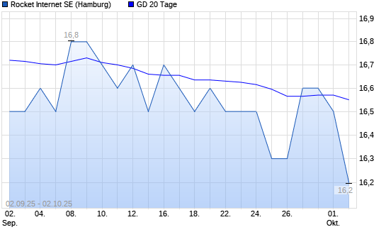 Mit dem Rücksetzer auf 16,50 EUR hat die Rocket Internet-Aktie am 01.10.2025 die 20-Tage-Linie nach unten gekreuzt.
