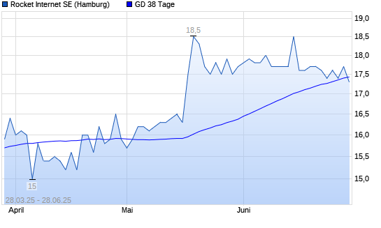 Mit dem Rücksetzer auf 17,30 EUR hat die Rocket Internet-Aktie am 27.06.2025 die 38-Tage-Linie nach unten gekreuzt.