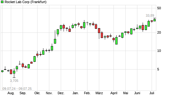 Mit dem Anstieg auf 33,67 EUR hat die Rocket Lab-Aktie (ISIN US7731211089) am 08.07.2025 ein neues All-Time-High erreicht und damit den Kurs vom 07.07.2025 eingestellt.
