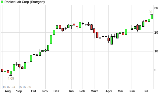 Mit dem Anstieg auf 36,20 EUR hat die Rocket Lab-Aktie (ISIN US7731211089) am 14.07.2025 ein neues All-Time-High erreicht und damit den Kurs vom 11.07.2025 eingestellt.