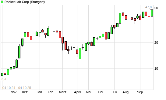 Mit dem Anstieg auf 47,00 EUR hat die Rocket Lab-Aktie (ISIN US7731211089) am 03.10.2025 ein neues All-Time-High erreicht und damit den Kurs vom 15.09.2025 eingestellt.