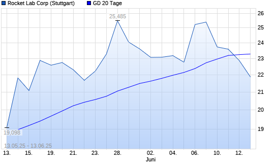 Mit dem Rücksetzer auf 22,81 EUR hat die Rocket Lab-Aktie am 12.06.2025 die 20-Tage-Linie nach unten gekreuzt.