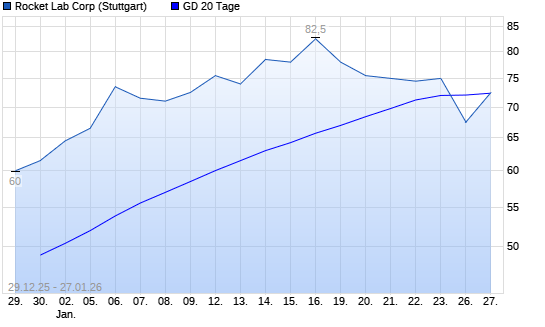 Mit dem Rücksetzer auf 68,00 EUR hat die Rocket Lab-Aktie am 26.01.2026 die 20-Tage-Linie nach unten gekreuzt.