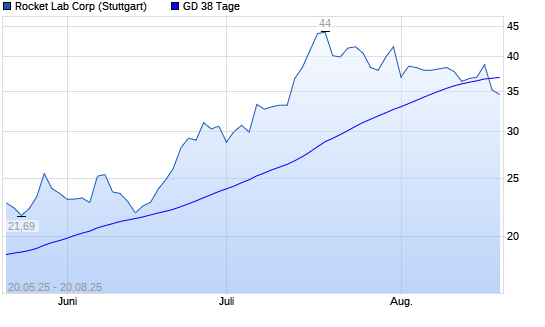 Mit dem Rücksetzer auf 36,80 EUR hat die Rocket Lab-Aktie am 19.08.2025 die 38-Tage-Linie nach unten gekreuzt.