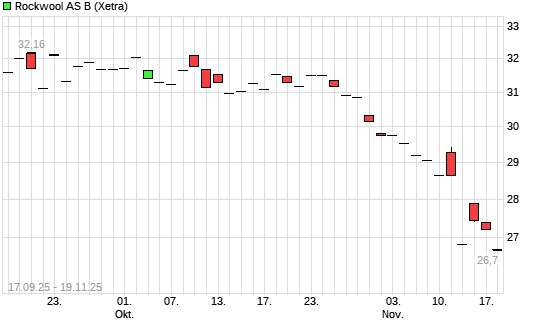 Mit dem Rücksetzer auf 26,58 EUR hat die Rockwool International-Aktie (ISIN DK0063855168) am 18.11.2025 ein neues 12-Monats-Tief erreicht und damit den Kurs vom 17.11.2025 eingestellt.
