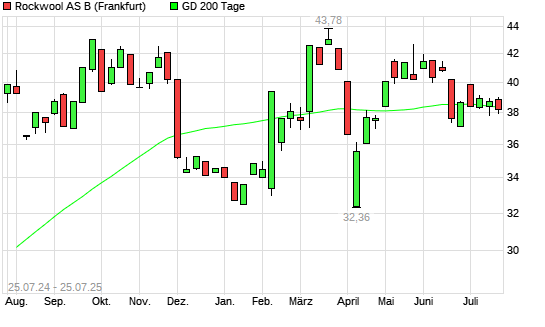 Mit dem Anstieg auf 38,98 EUR hat die Rockwool International-Aktie am 24.07.2025 die 200-Tage-Linie nach oben gekreuzt.