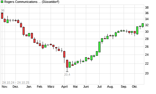 Mit dem Anstieg auf 32,00 EUR hat die Rogers Communications-Aktie (ISIN CA7751092007) am 23.10.2025 ein neues 6-Monats-Hoch erreicht und damit den Kurs vom 22.10.2025 eingestellt.