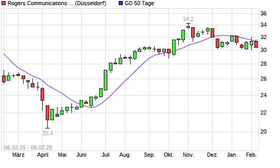 Mit dem Anstieg auf 31,40 EUR hat die Rogers Communications-Aktie am 05.02.2026 die 50-Tage-Linie nach oben gekreuzt.