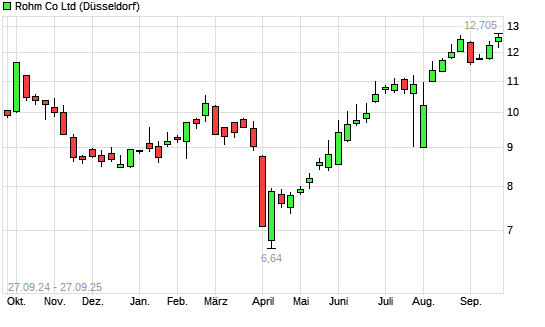 Mit dem Anstieg auf 12,69 EUR hat die Rohm-Aktie (ISIN JP3982800009) am 26.09.2025 ein neues 12-Monats-Hoch erreicht und damit den Kurs vom 28.08.2025 eingestellt.
