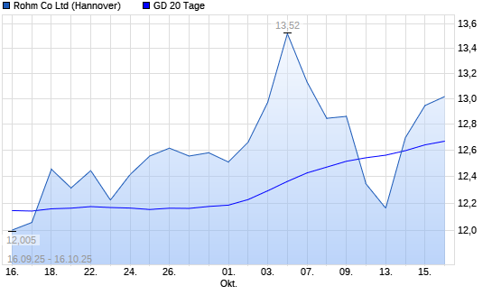 Mit dem Anstieg auf 12,90 EUR hat die Rohm-Aktie am 15.10.2025 die 20-Tage-Linie nach oben gekreuzt.