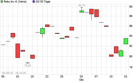 Mit dem Anstieg auf 82,38 EUR hat die Roku-Aktie am 15.10.2025 die 50-Tage-Linie nach oben gekreuzt.