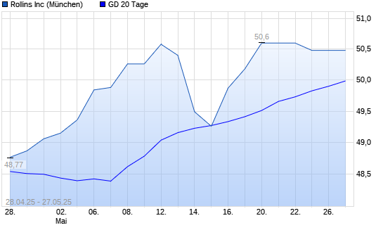 Mit dem Anstieg auf 49,99 EUR hat die Rollins-Aktie am 26.05.2025 die 20-Tage-Linie nach oben gekreuzt.