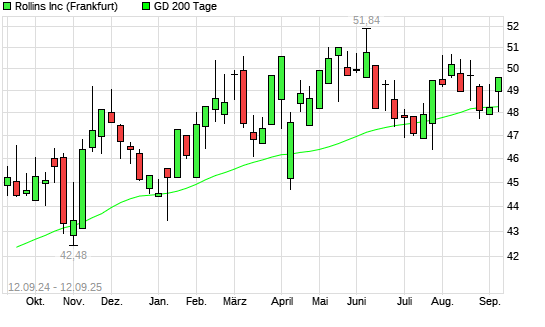 Mit dem Anstieg auf 48,45 EUR hat die Rollins-Aktie am 11.09.2025 die 200-Tage-Linie nach oben gekreuzt.