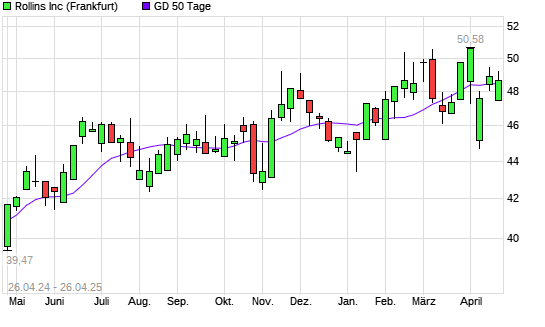 Mit dem Anstieg auf 48,63 EUR hat die Rollins-Aktie am 25.04.2025 die 50-Tage-Linie nach oben gekreuzt.