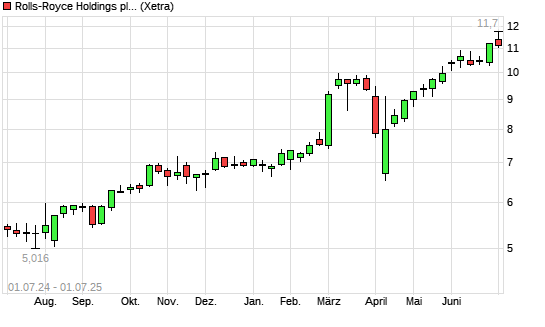 Mit dem Anstieg auf 11,54 EUR hat die Rolls-Royce-Aktie (ISIN GB00B63H8491) am 30.06.2025 ein neues 5-Jahres-Hoch erreicht und damit den Kurs vom 27.06.2025 eingestellt.