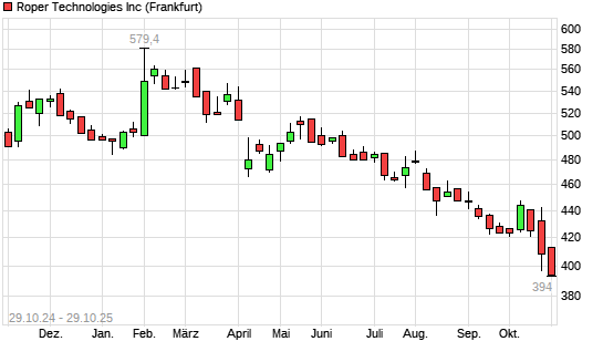 Mit dem Rücksetzer auf 394,00 EUR hat die Roper Industries-Aktie (ISIN US7766961061) am 28.10.2025 ein neues 12-Monats-Tief erreicht und damit den Kurs vom 27.10.2025 eingestellt.