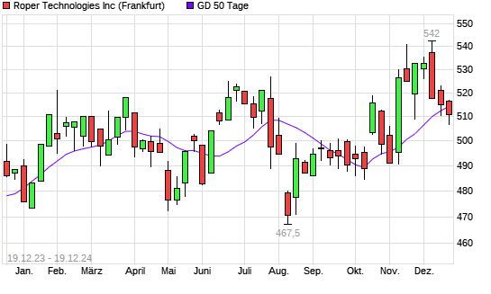 Mit dem Rücksetzer auf 510,00 EUR hat die Roper Industries-Aktie am 18.12.2024 die 50-Tage-Linie nach unten gekreuzt.