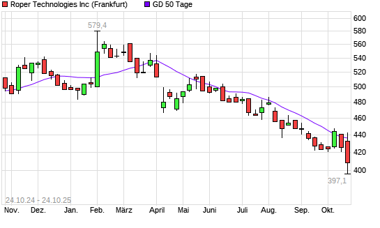 Mit dem Rücksetzer auf 408,50 EUR hat die Roper Industries-Aktie am 23.10.2025 die 50-Tage-Linie nach unten gekreuzt.