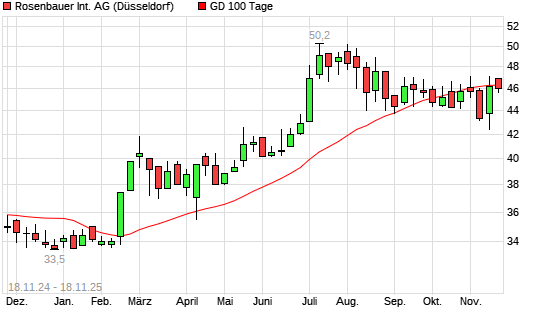 Mit dem Anstieg auf 46,50 EUR hat die Rosenbauer-Aktie am 17.11.2025 die 100-Tage-Linie nach oben gekreuzt.
