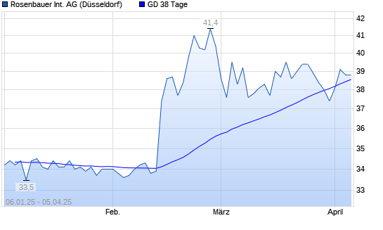 Mit dem Anstieg auf 38,80 EUR hat die Rosenbauer-Aktie am 04.04.2025 die 38-Tage-Linie nach oben gekreuzt.