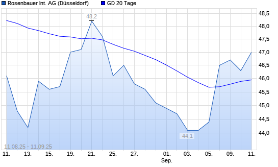 Mit dem Rücksetzer auf 45,70 EUR hat die Rosenbauer-Aktie am 10.09.2025 die 20-Tage-Linie nach unten gekreuzt.