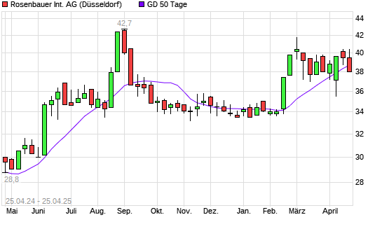 Mit dem Rücksetzer auf 38,40 EUR hat die Rosenbauer-Aktie am 24.04.2025 die 50-Tage-Linie nach unten gekreuzt.