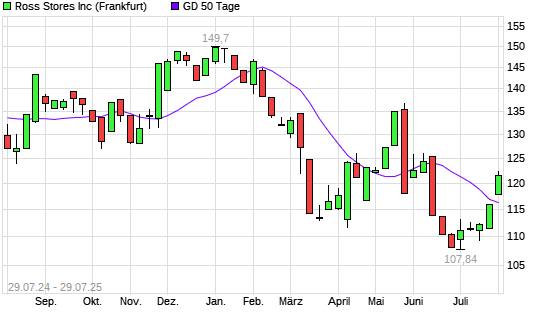 Mit dem Anstieg auf 117,88 EUR hat die Ross Stores-Aktie am 28.07.2025 die 50-Tage-Linie nach oben gekreuzt.