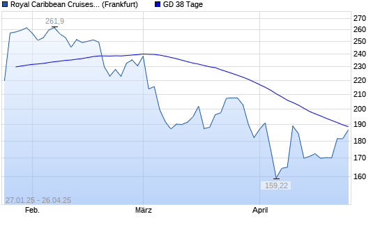 Mit dem Anstieg auf 186,74 EUR hat die Royal Caribbean Cruises-Aktie am 25.04.2025 die 38-Tage-Linie nach oben gekreuzt.
