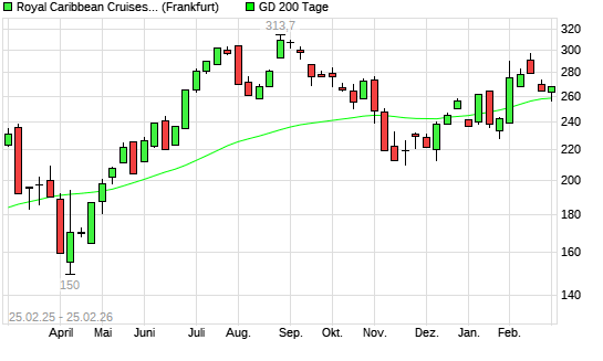 Mit dem Rücksetzer auf 256,45 EUR hat die Royal Caribbean Cruises-Aktie am 24.02.2026 die 200-Tage-Linie nach unten gekreuzt.