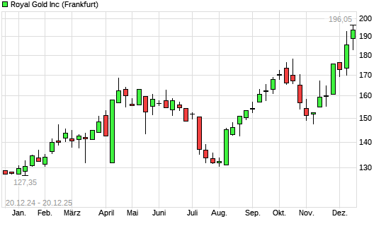 Mit dem Anstieg auf 193,40 EUR hat die Royal Gold-Aktie (ISIN US7802871084) am 19.12.2025 ein neues All-Time-High erreicht und damit den Kurs vom 18.12.2025 eingestellt.