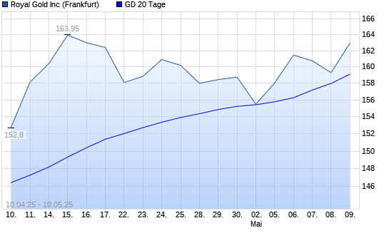 Mit dem Anstieg auf 162,95 EUR hat die Royal Gold-Aktie am 09.05.2025 die 20-Tage-Linie nach oben gekreuzt.