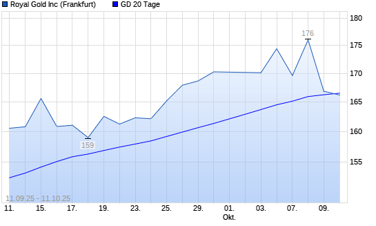 Mit dem Rücksetzer auf 166,20 EUR hat die Royal Gold-Aktie am 10.10.2025 die 20-Tage-Linie nach unten gekreuzt.