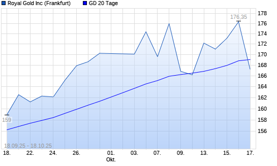 Mit dem Rücksetzer auf 167,20 EUR hat die Royal Gold-Aktie am 17.10.2025 die 20-Tage-Linie nach unten gekreuzt.