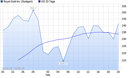 Mit dem Rücksetzer auf 230,80 EUR hat die Royal Gold-Aktie am 19.02.2026 die 20-Tage-Linie nach unten gekreuzt.