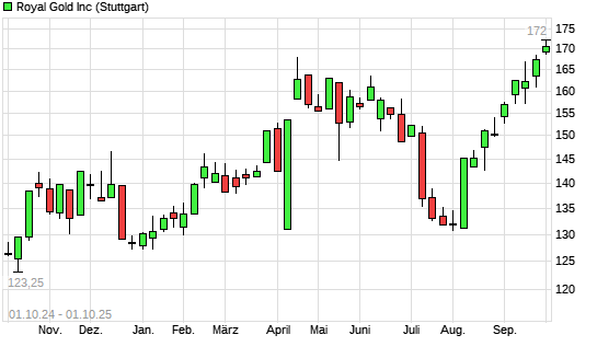 Mit dem Anstieg auf 170,25 EUR hat die Royal Gold-Aktie (ISIN US7802871084) am 30.09.2025 ein neues All-Time-High erreicht und damit den Kurs vom 29.09.2025 eingestellt.Die Royal Gold-Aktie ...weiterlesen