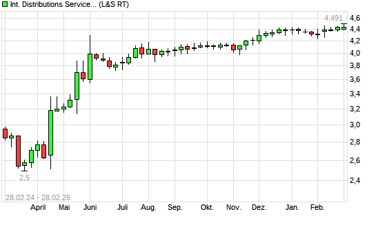 Mit dem Anstieg auf 4,57 EUR hat die Royal Mail-Aktie (ISIN GB00BDVZYZ77) am 27.02.2025 ein neues 3-Jahres-Hoch erreicht und damit den Kurs vom 28.02.2022 eingestellt.